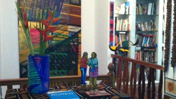 Agora, para um almoço totalmente original, vamos ao ateliê casa de Maria Adair, renomada artista plástica local que transforma em arte cada parte do universo que a cerca: o piso, as paredes, o teto, os móveis, os utensílios, as artes em areia nas portas e suas tantas pinturas.